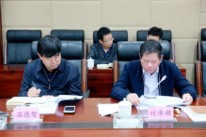 集团公司党委书记、董事长付漳湖代表班子作对照检查,集团公司党委副书记、总经理温德智及全体班子成员与会