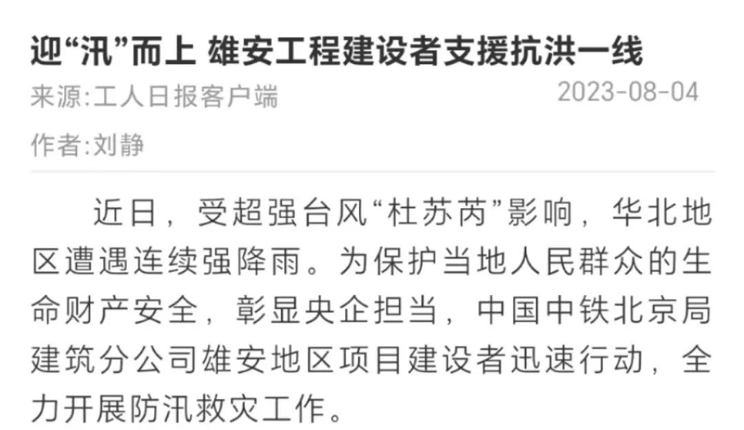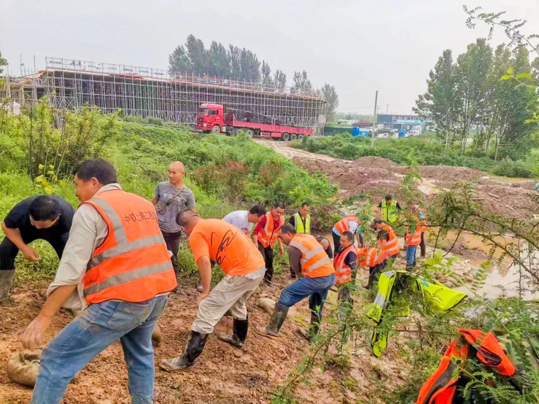 中铁上海局四公司廊坊临空安置房项目部工会主动向当地政府请缨,迅速组成防汛先锋队参与到永兴河河道抢修工作中。项目部组织救援人员30余人,调动指挥车等运输设备3台,携带沙袋700余条、铁锹40把赶往现场。救援现场,防汛先锋队队员迅速搬卸物资、安装抽水泵,在现场疏通排水通道、修复受损设施。整个救援工作有条不紊进行,经过抢险人员8个小时的不懈努力,永兴河险情得到有效控制。