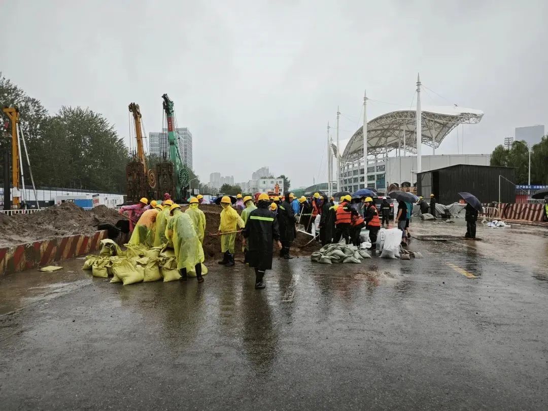 中铁上海局四公司天津地铁4号线2标项目部工会组织项目员工主动出击,迅速组建了防汛先锋队,集结60余人分批前往永定新河区域参与防汛抗洪工作。参与人员顶着烈日,发扬“铁”一般的担当精神,争分夺秒、挥洒汗水,铲沙、装袋、搬运,在一锹一铲一袋间,装填了数十方沙子、数千个防汛沙袋,运往运河堤岸筑起一道道防汛的防线,保障北辰区天津人民的生命安全。