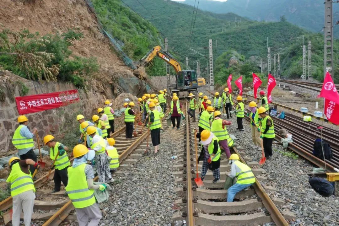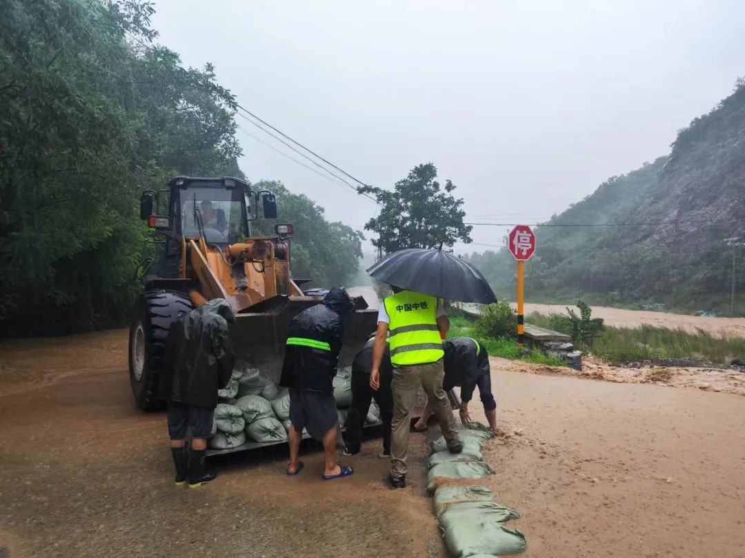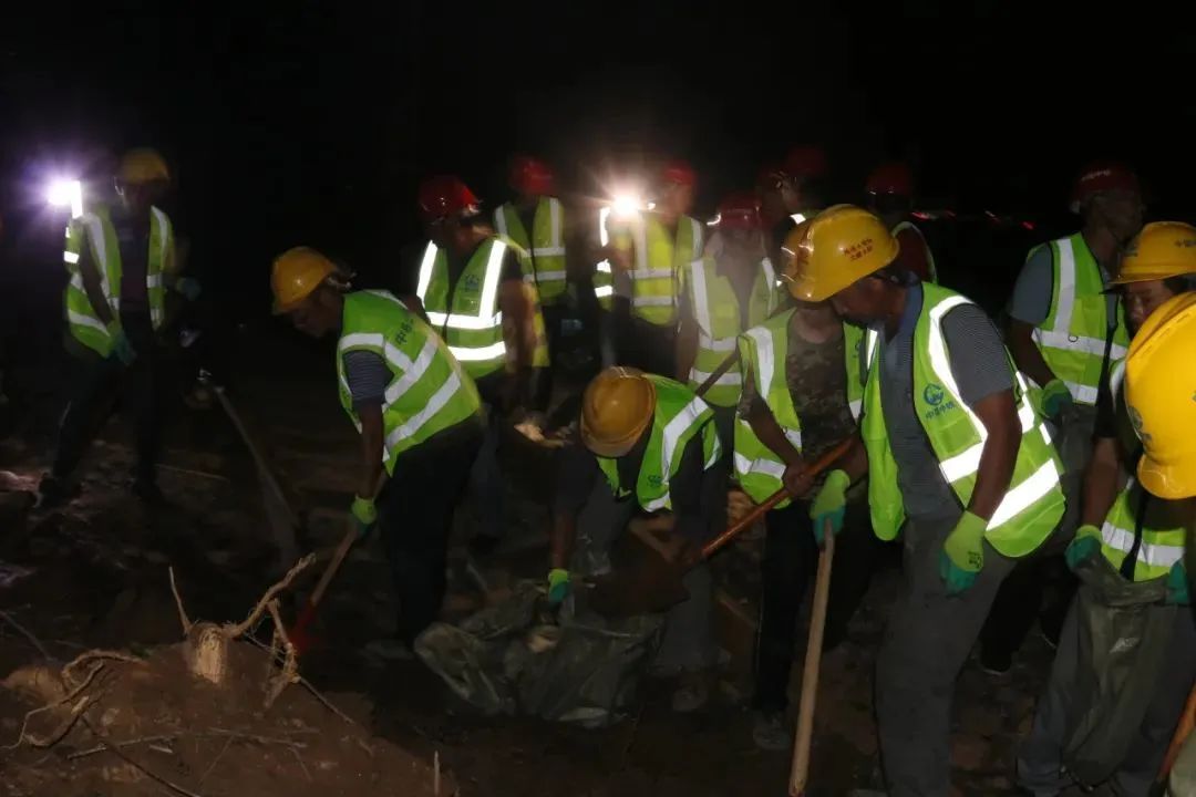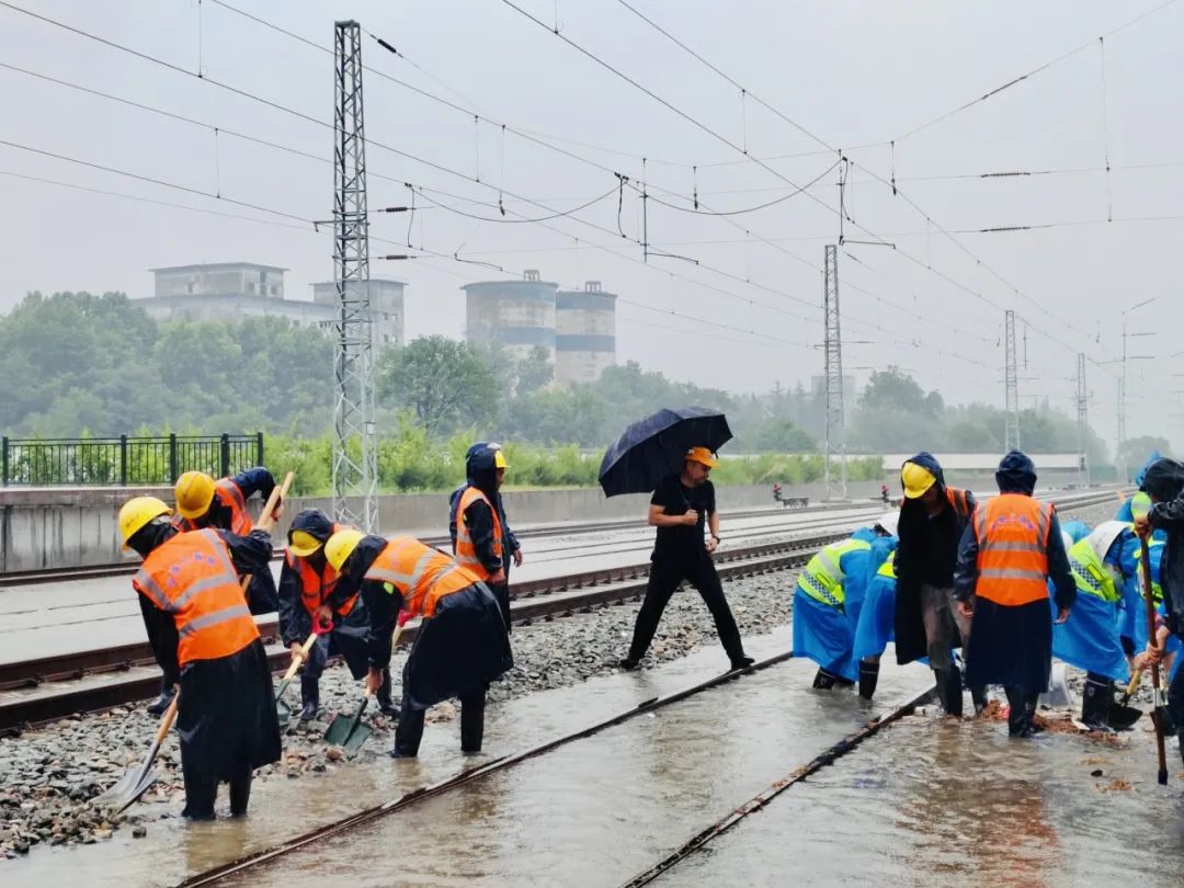 中铁上海局西延铁路项目部迅速启动应急救援机制,快速筹集抢险物资、设备,并成立现场抢险、物资筹备、设备协调、后勤保障4个工作组。抢险队伍第一时间就位,迅速组织抢险人员与大型机械设备投入抢险作业。完成耀州站抢险任务后,救援队伍再次接到对咸铜铁路富平境内梅家坪站路基滑坡位置进行处理的抢险任务,指挥小组放弃休息,迅速组织抢险救援队伍、机械设备及保障物资连夜赶赴滑坡现场,并调集西安地铁10号线项目部40余人,白加黑冒雨进行抢修作业。