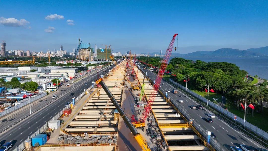 滨海大道交通综合改造工程西接沙河东立交,东至广深高速公路,全长约5.95千米,其中下沉隧道段1.56千米,全线按主路双向8车道+辅路双向6车道进行改造。该项目建成后,地面连接深圳湾公园,地下行车,形成“地面+地下”立体交通,将极大完善城市干线路网,有效缓解超级总部段的交通瓶颈,同时消除滨海大道对深圳湾景观带的分割,促进城市建筑与滨海景观的融合,为深圳湾总部基地提供更高质量的公共空间,提升深圳城市客厅品质,助力粤港澳大湾区交通基础设施高质量发展和深圳打造“交通强国”城市范例。