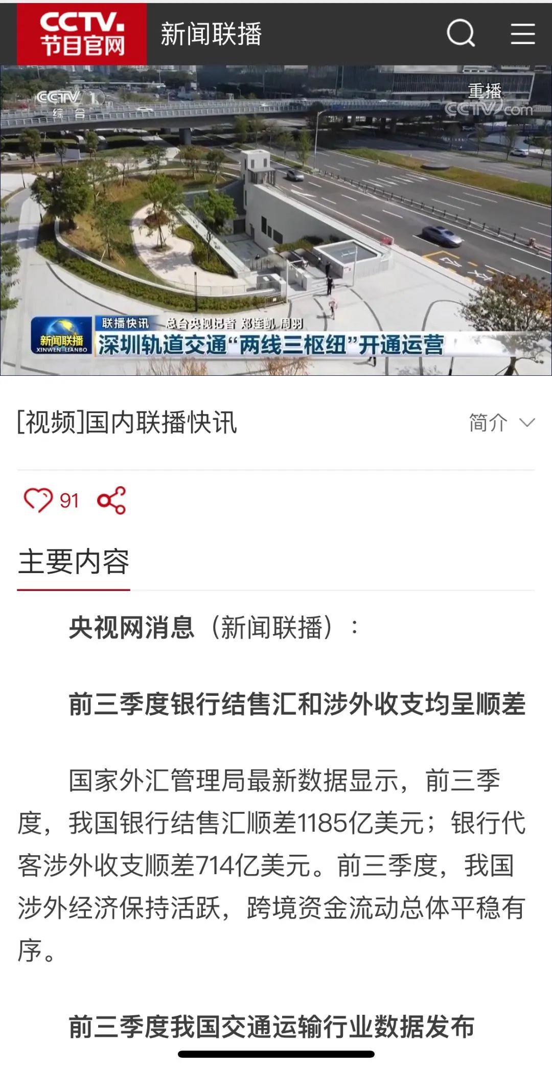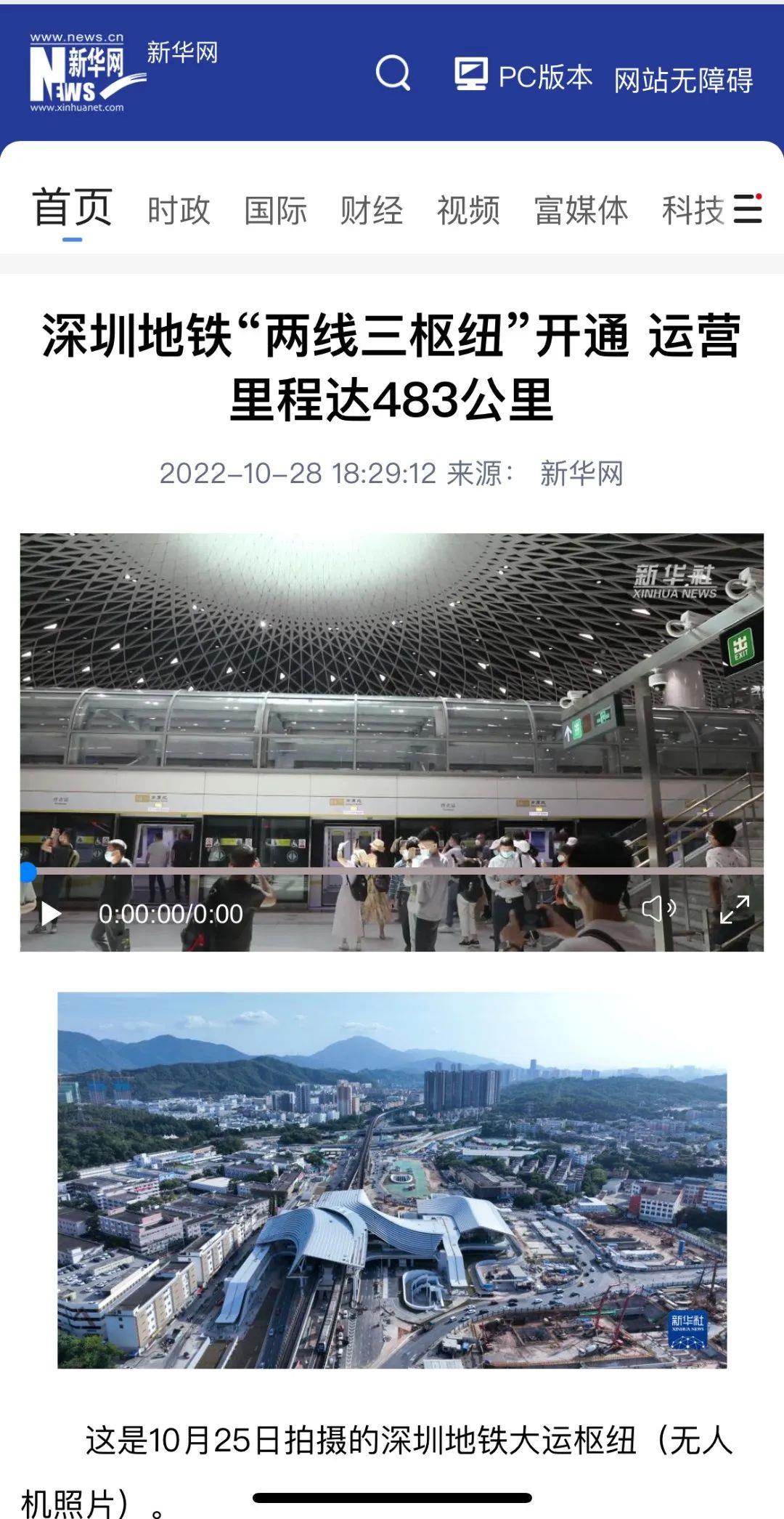 新闻联播丨深圳轨道交通“两线三枢纽”开通运营
