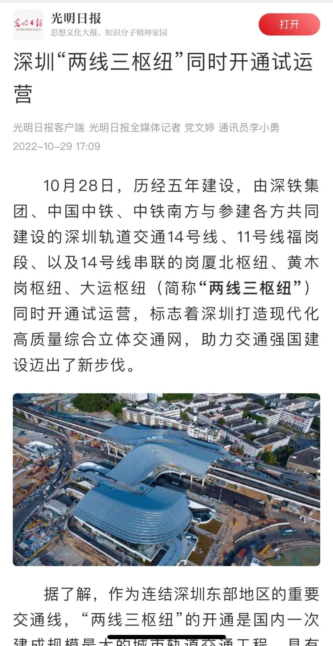 光明日报丨深圳“两线三枢纽”同时开通试运营