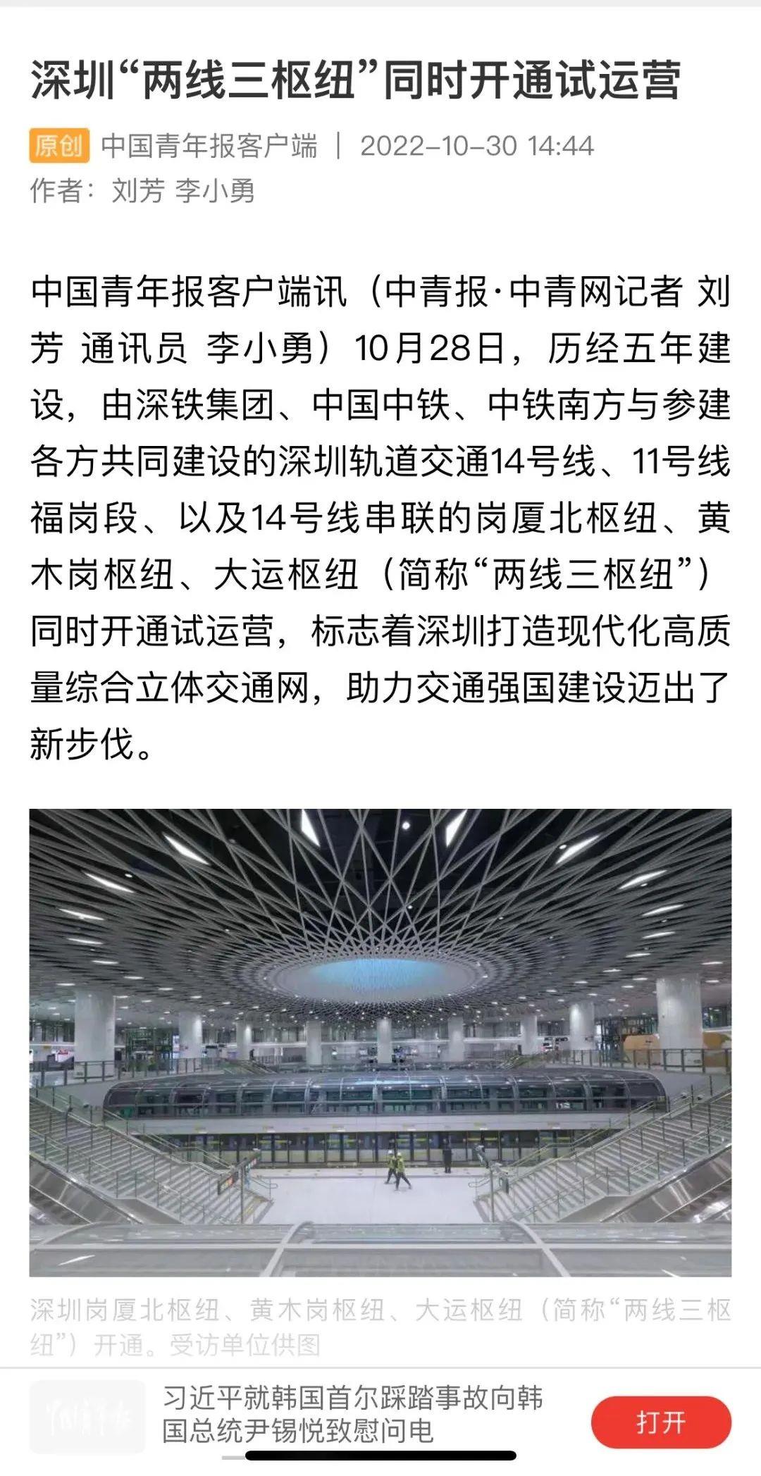 中国青年报丨深圳“两线三枢纽”同时开通试运营