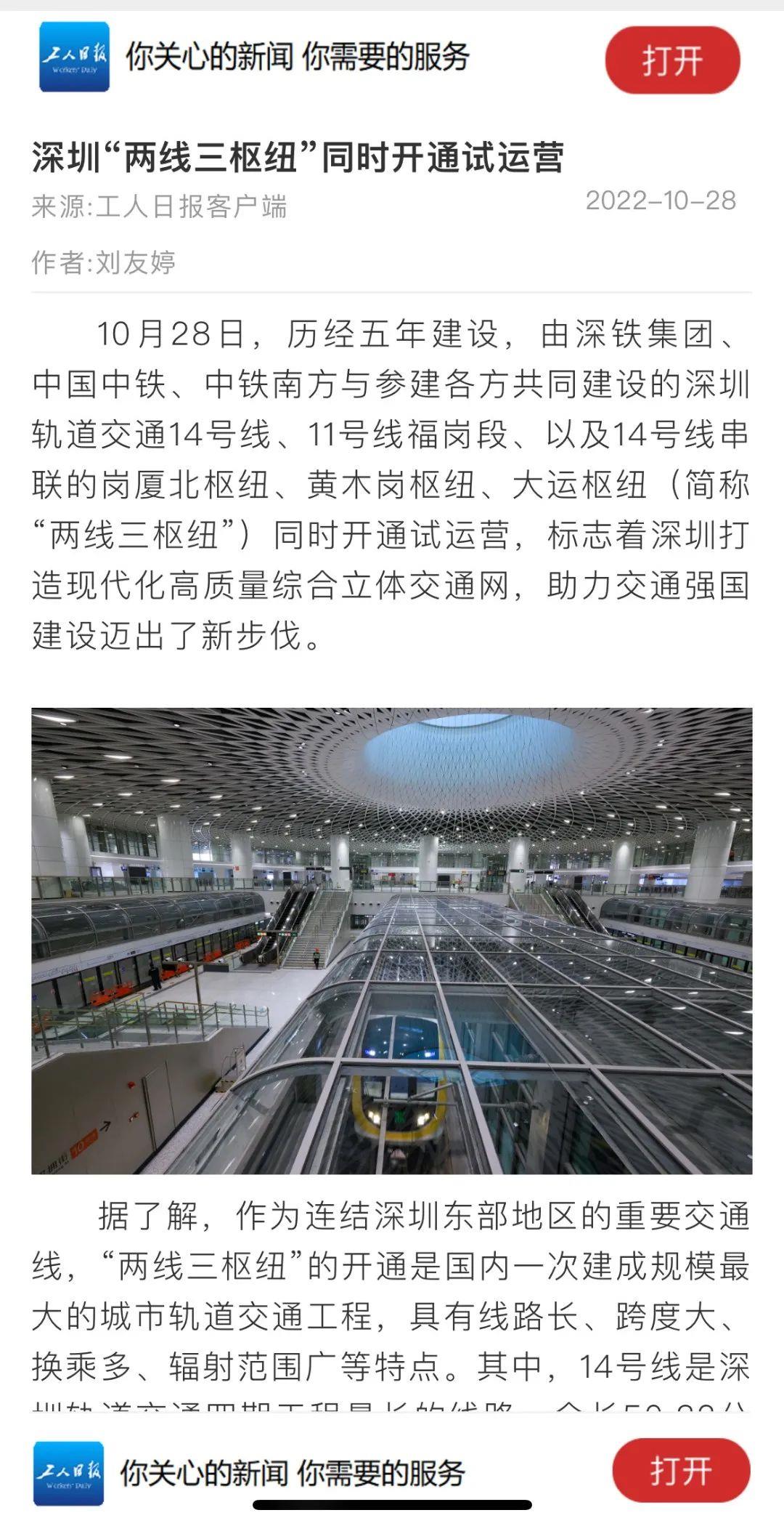 工人日报丨深圳“两线三枢纽”同时开通试运营