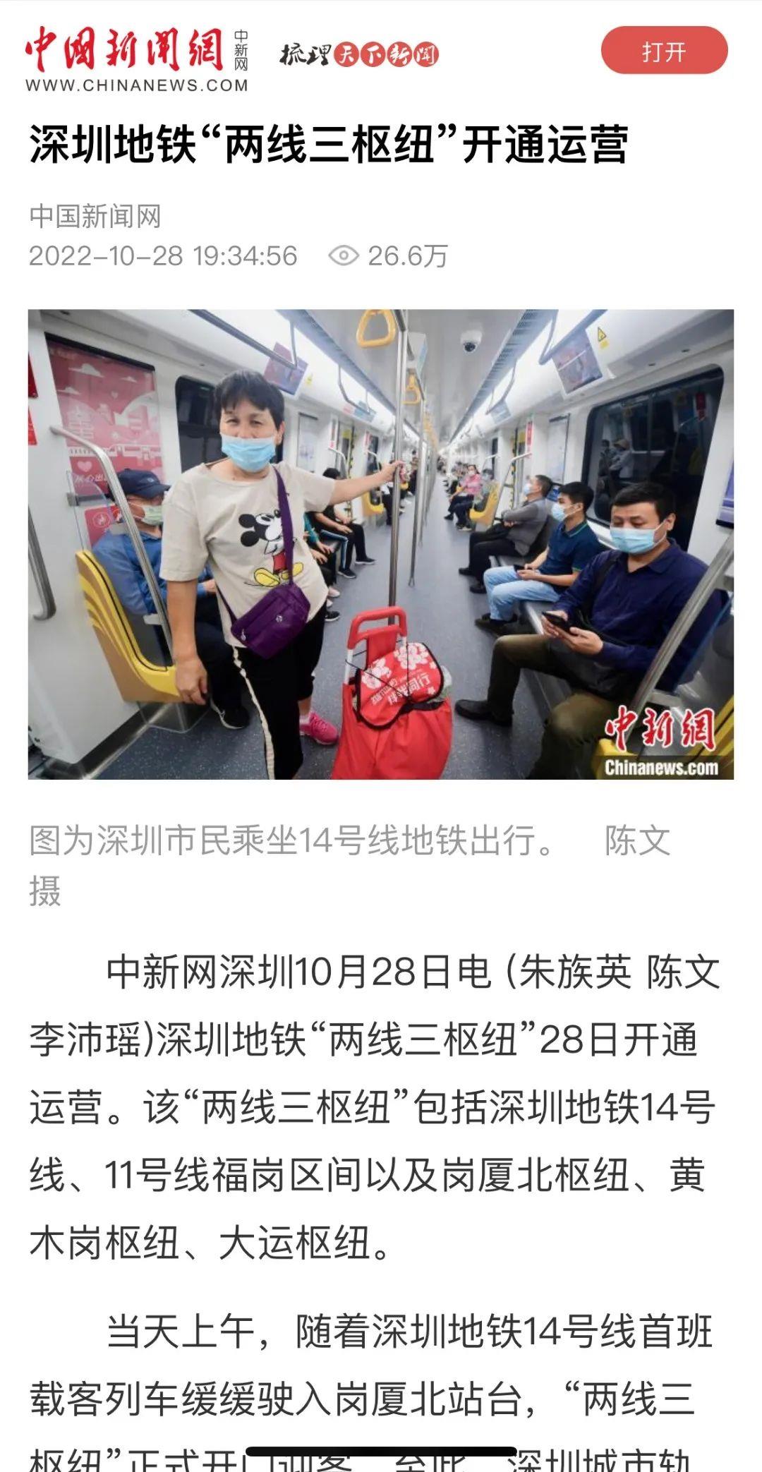 中国新闻网丨深圳地铁“两线三枢纽”开通运营