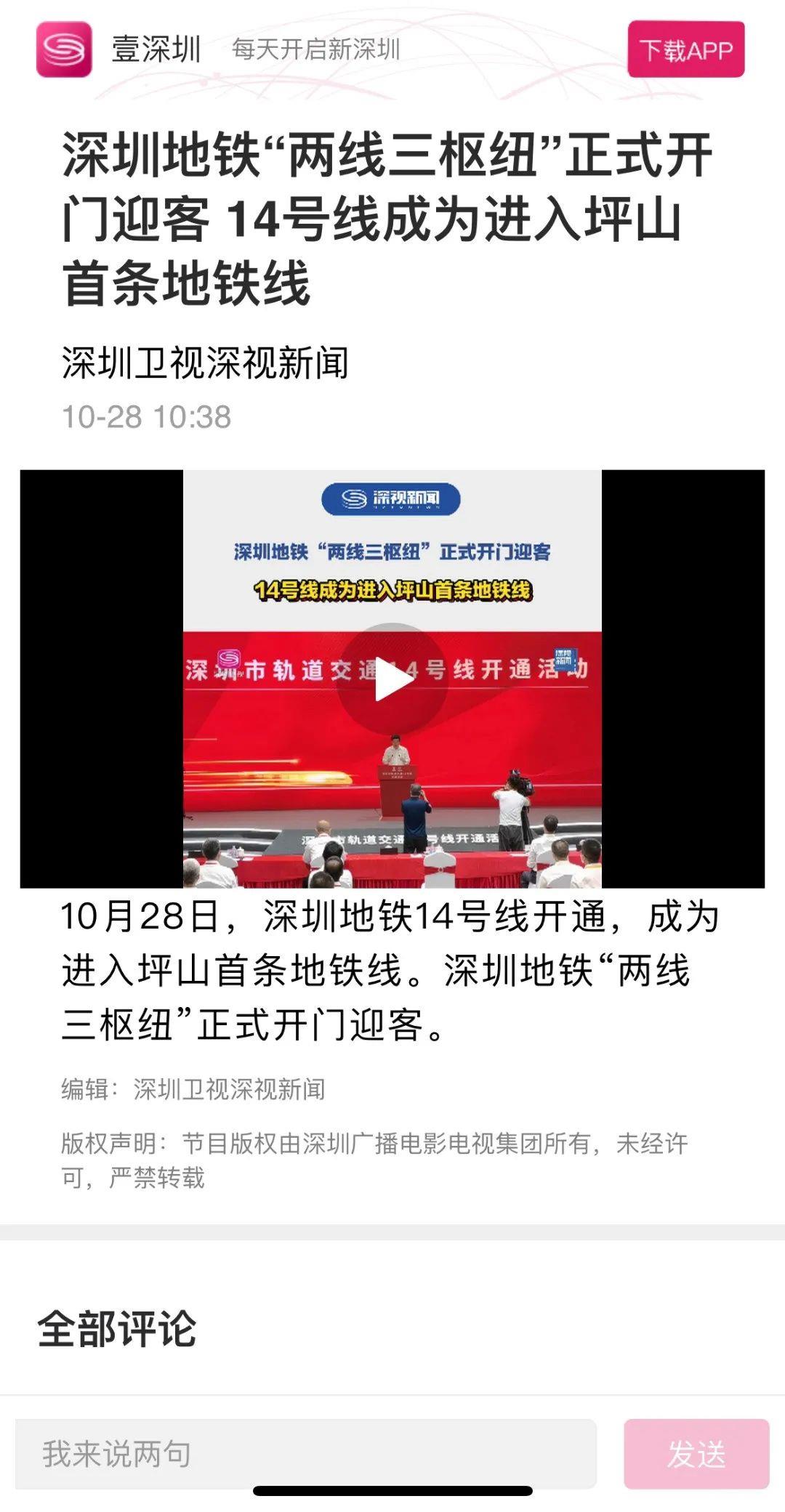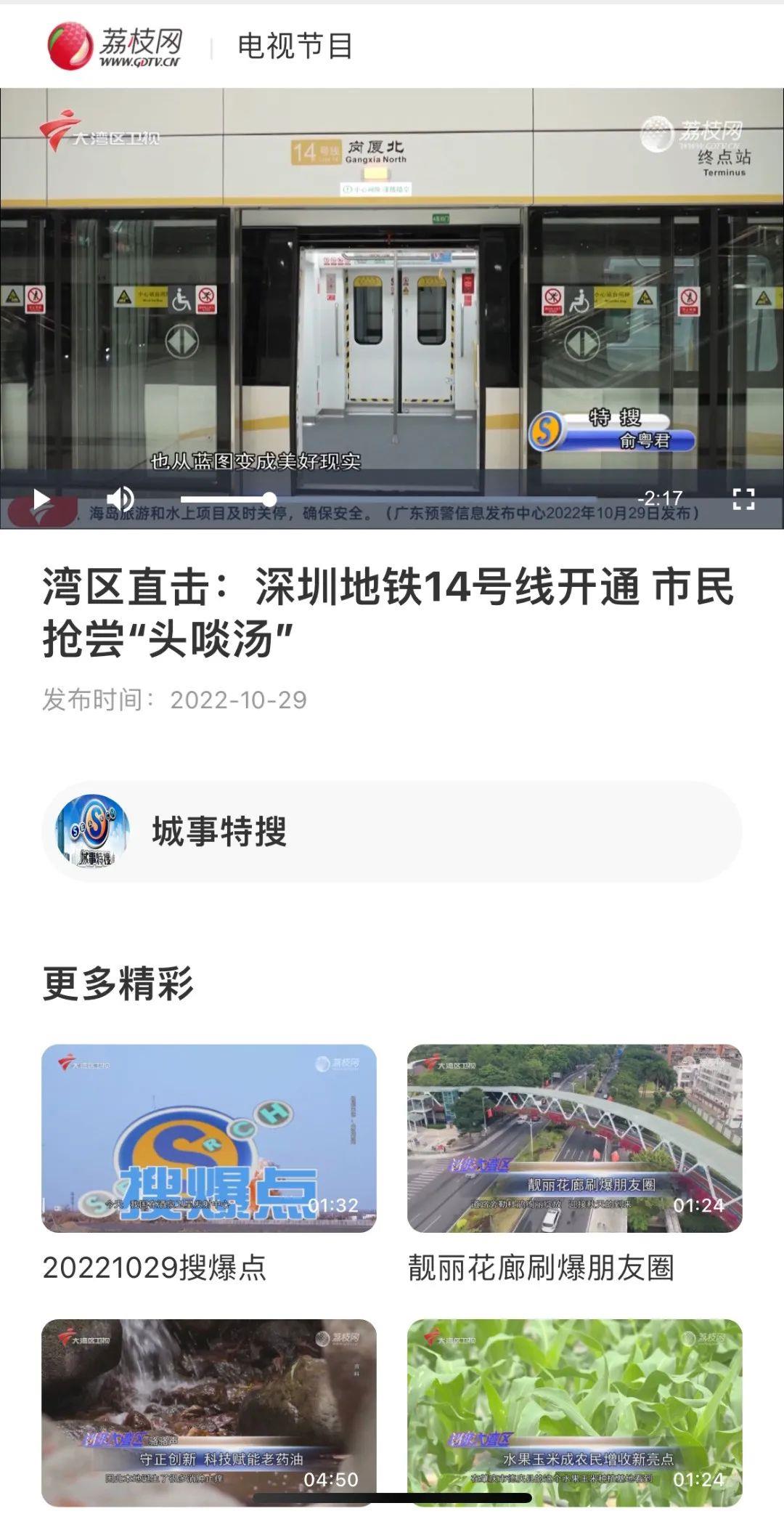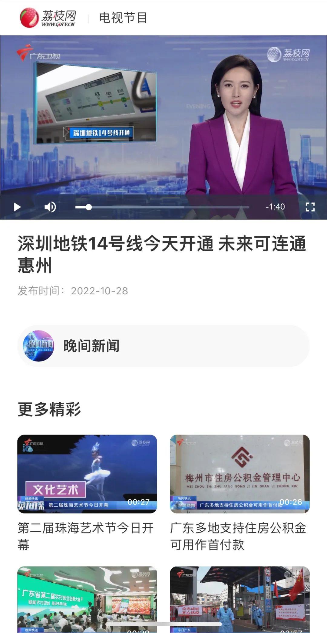 广东卫视丨深圳地铁14号线今天开通 未来可连通惠州