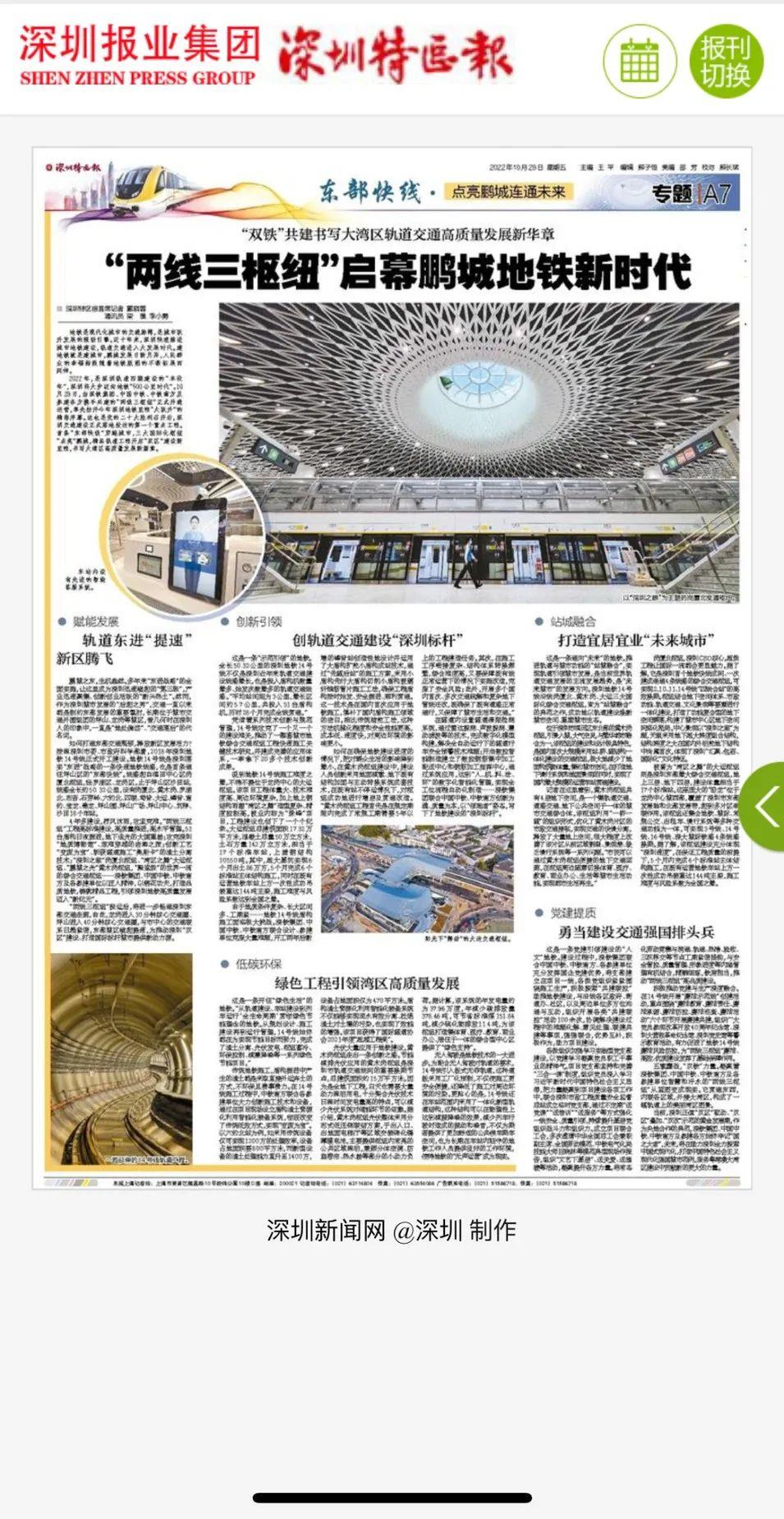 深圳特区报丨“两线三枢纽”启幕鹏城地铁新时代