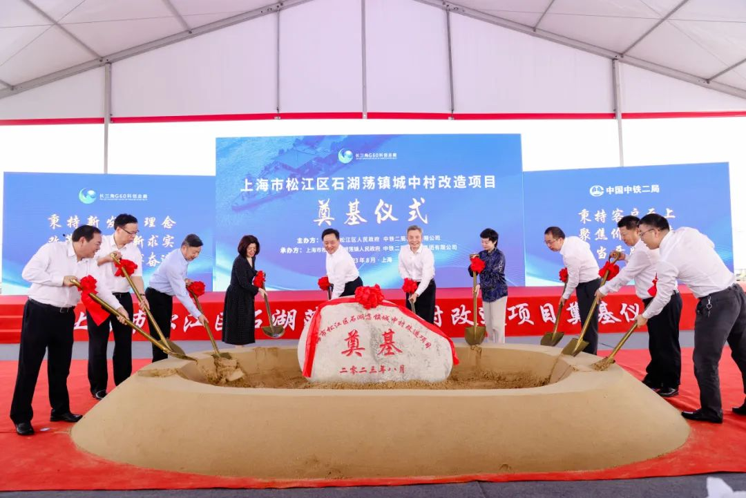 8月31日上午,上海市松江区石湖荡镇城中村改造项目奠基仪式举行。上海市松江区委书记程向民,中铁二局党委书记、董事长汪海旺出席并讲话,区委副书记、区长王靖致欢迎辞。与会领导听取项目情况介绍,并共同为项目培土奠基。该项目是松江区新一轮“城中村”改造的首个项目,项目改造分为四期,第一期为动迁安置房,总计容面积约18.4万平方米,计划2025年年底竣工,其余地块正稳步推进。该项目的启动,标志着中铁二局房地产公司将着力共建长三角G60科创走廊,为打造政府放心、群众满意的精品工程,切实贡献二局力量。