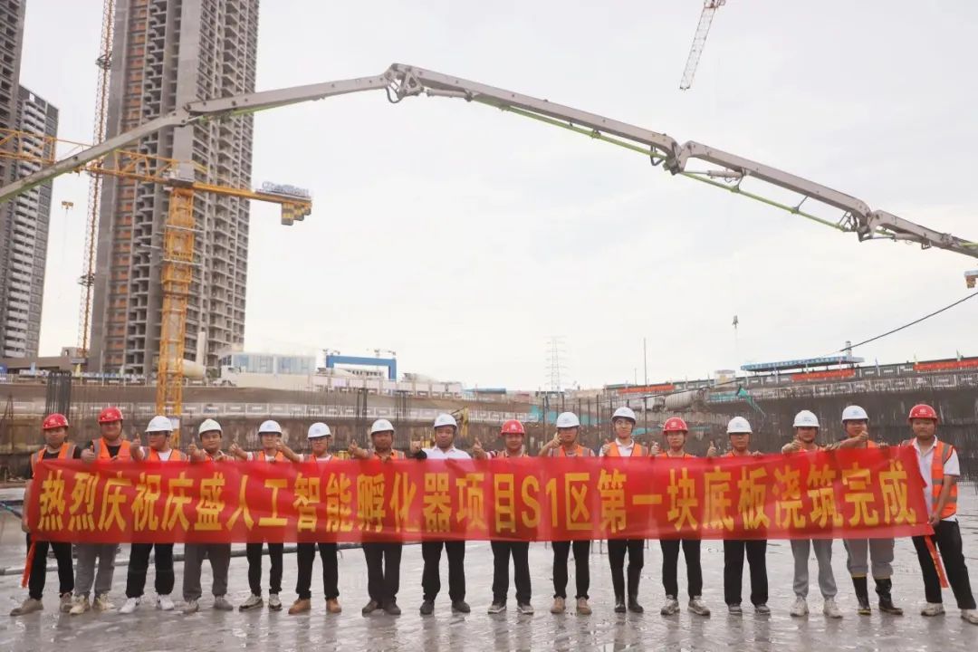 深圳公司庆盛人工智能孵化器项目S1区完成第一块底板浇筑