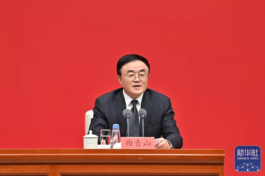 ▲中央党史和文献研究院院长曲青山回答记者提问