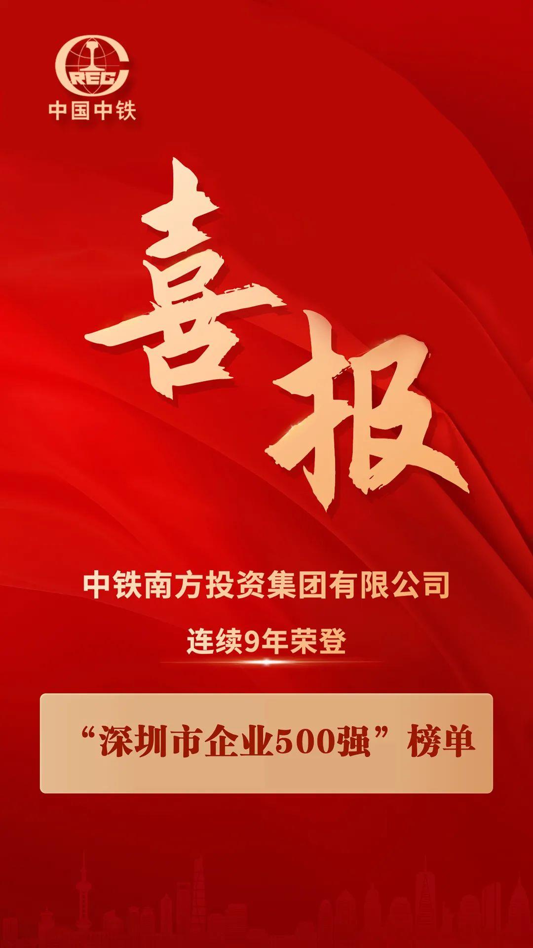 9月21日,深圳市企业联合会、深圳市企业家协会发布了“2022深圳企业500强”榜单及《2022深圳500强企业发展报告》。中铁南方投资集团位列2022年“深圳企业500强”榜单第57名,连续9年荣登该榜单,进一步彰显了企业综合实力和品牌影响力。