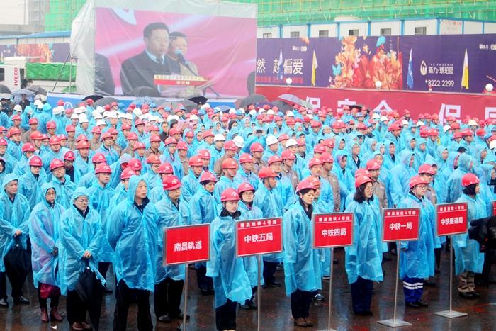江西省委常委、南昌市委书记殷美根,市委副书记、市长郭安,中国中铁副总裁马力等领导出席了开竣工仪式,各建设单位、施工单位员工代表约600多人参加了开竣工仪式。
