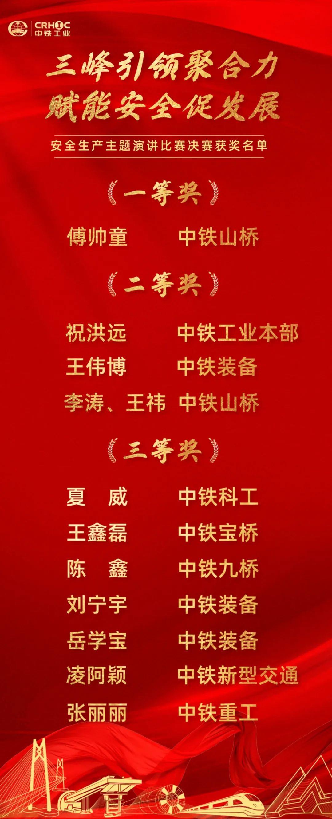 为庆祝建党102周年,创新推动“党建+安全生产”深度融合,进一步发挥党建引领作用,增强全体职工的安全意识,6月30日下午,中铁工业“三峰引领聚合力,赋能安全促发展”安全生产主题演讲比赛决赛在京成功举办,共有来自中铁工业本部及所属各单位的12名选手经初赛选拔后参加本次决赛。中铁工业党委副书记、副董事长(主持党委、董事会工作)张威,党委副书记、工会主席杨飞,党委委员、纪委书记陈立峰,党委委员、总会计师、总法律顾问宁辉东出席活动。