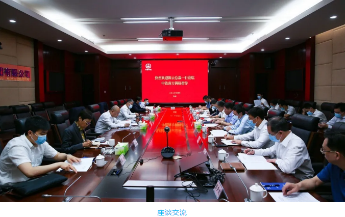 4月28日,中国中铁总裁陈云一行到中铁华南区域总部(中铁南方)调研指导,深入了解企业发展和投资经营情况,强调要以习近平新时代中国特色社会主义思想为指导,深入学习贯彻中央经济工作会议和股份公司年初工作会议精神,认真研究区域总部和投资公司定位,充分发挥区域总部监督、协调、指导、服务作用,为中国中铁华南区域市场更好更快发展作出新贡献。中国中铁副总裁刘辉、股份公司经营开发部、投资发展部负责人,中铁南方全体班子成员参加调研座谈。