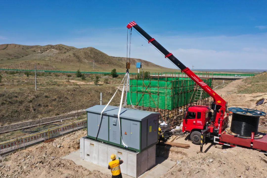 太锡铁路南起崇礼铁路太子城站,北至内蒙古自治区锡林郭勒盟锡林浩特市,内蒙古段线路全长261公里,包含10站10区间,箱变安装是电力工程室外电力设备施工的一道重要工序,保证铁路供电系统更加安全、稳定、高效地运作,为铁路各个方面持续供应高质量电量。