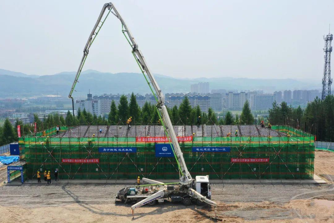 近日,随着最后一方混凝土浇筑完成,沈阳电化公司承建的沈白高铁吉林段首座“四电”房屋——白山东牵引变电所成功封顶。