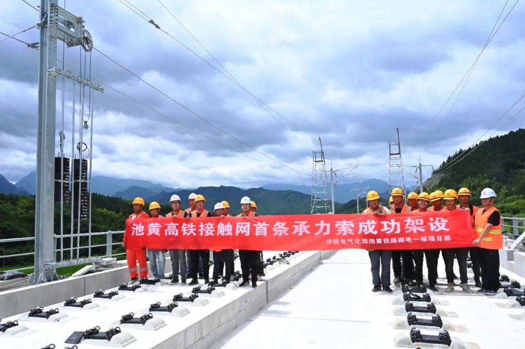 6月29日,西安电化公司承建的池黄高铁站后“四电”工程首条接触网承力索架成功架设、首台主变压器顺利就位,项目建设进入冲刺阶段。