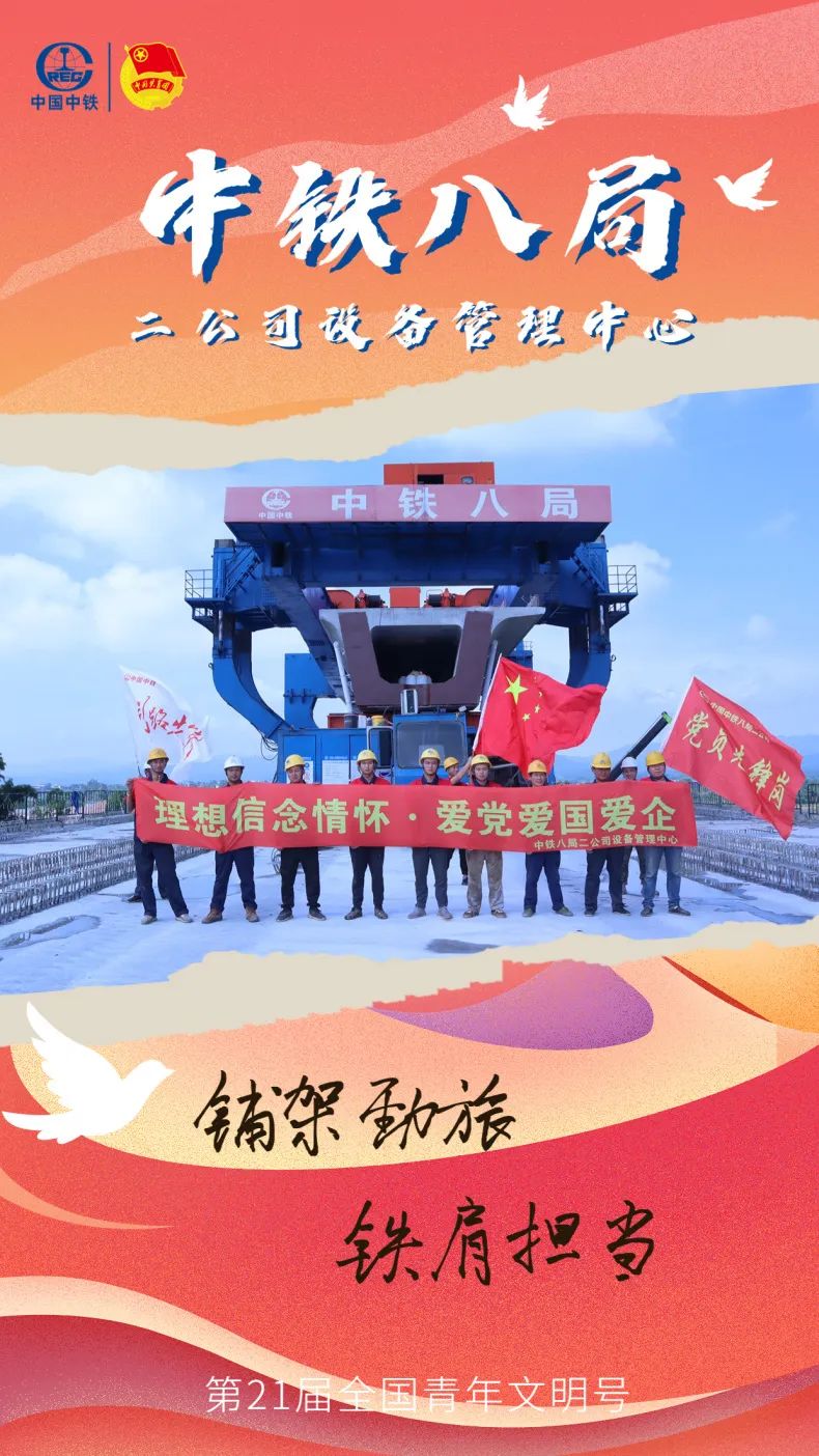 中铁八局二公司设备管理中心作为国内唯一一家拥有专业铺架设备管理基地的国有企业所属单位,坚持在争创全国青年文明号中践行“铺架劲旅,铁肩担当”的文化理念,充分发挥青年团员的生力军和突击队作用,引领集体青年在生产经营、合规管理、科技创新、维稳保安、抢险救灾、乡村振兴和重大工程项目“保开通”等各项工作中争当开路先锋。近两年来,设备管理中心青年以高度的责任感和集体荣誉感,不断规范团青制度体系建设,强力抓实基础管理,统筹谋划活动载体创新,紧密围绕中心工作,切实担当央企职责,先后荣获2018-2019年度四川省青年文明号和第21届全国青年文明号。
