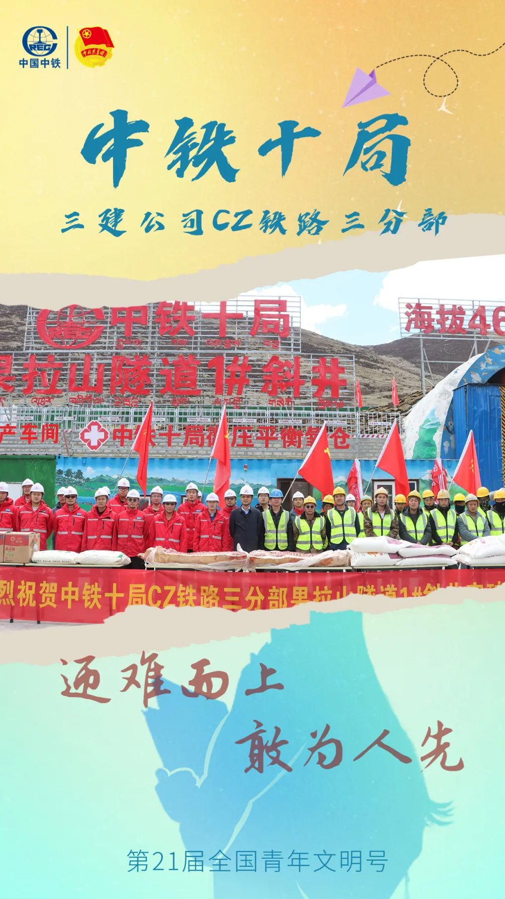 中铁十局三建公司CZ铁路三分部“青年文明号”成立于2022年,他们本着“缺氧不缺精神、艰苦不怕吃苦、海拔高境界更高”的信念,总结以往铁路建设经验,以样板工程引路,积极创新工艺工法、使用环保智能设备,在保证“不多挖一方土、不多砍一棵树、不多铲一块草皮、不污染一滴水”的前提下有序推进项目建设。团队积极参与地方共建,帮助当地大学生就业,走访慰问驻八宿武警交通官兵、八宿县敬老院、卡若区若巴乡中心小学以及当地困难群众,描绘了民族团结一家亲的生动画卷。
