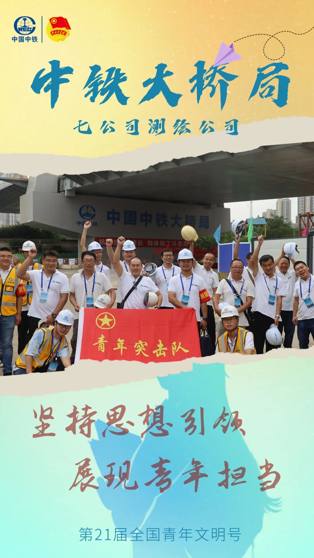 中铁大桥局七公司测绘公司团队是一支有理想、敢担当、能吃苦、肯奋斗的青年队伍。坚持思想引领,开展党的二十大知识竞答、“百年青春心向党、矢志建功新时代”主题团日、庆祝中国共产主义青年团成立一百周年等活动。展现青年担当,助力项目控制网复测200余次,测量路线长度近10000公里。坚持创新创效,4年来获得专利60项,其中发明16项;获中国中铁、中施协、中建协等QC成果奖16项;获湖北省测绘科技进步奖一等奖、湖北省职工技术创新二等奖,研发了国内首例3D微型磁力棱镜。坚持技能练兵,开办工匠训练营、技能筑梦大课堂,在武汉市连续3届测量大赛中共计13人进入前十,荣获武汉市优胜单位;在2021、2023年连续两届湖北省“工匠杯”测量竞赛中分别获团体第一名和一等奖;迄今累计获地市级及以上能手、工匠等38人次。